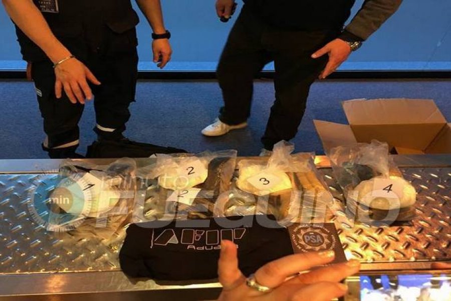 En el día de ayer, personal de la Aduana de Ushuaia procedió al secuestro de aproximadamente 2 kg de cocaína. La misma se encontraba oculta en las suelas de zapatos que venían como parte del equipaje de un joven riograndense de 27 años de edad. Esta persona fue demorada en el Aeropuerto de la ciudad de Ushuaia cuando se encontraba regresando de la ciudad de Córdoba,