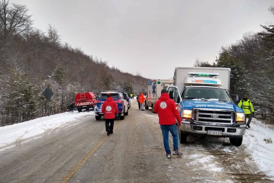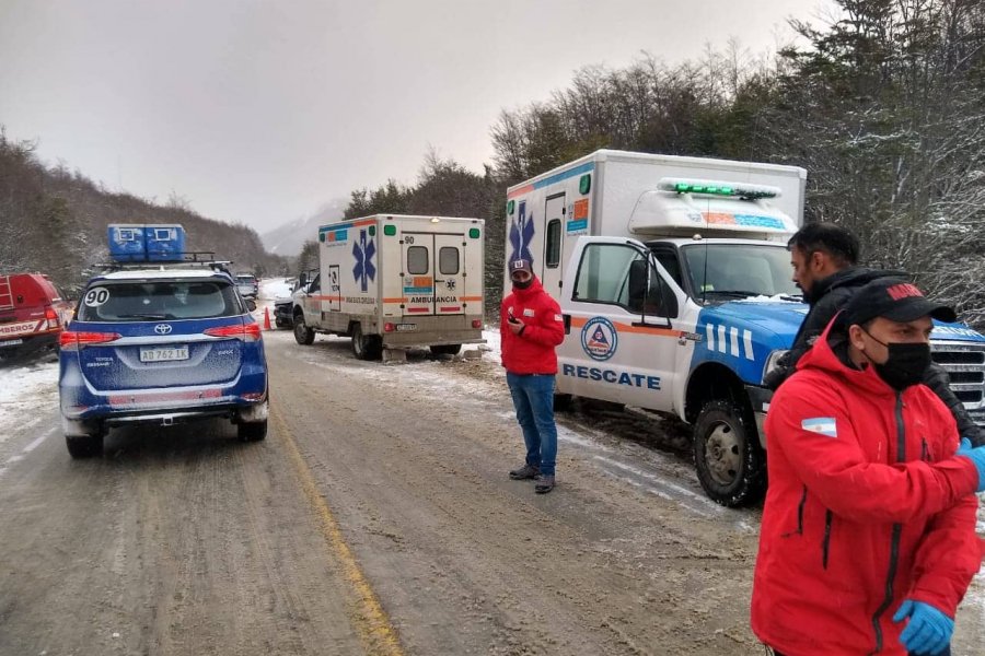 En la ciudad de Tolhuin se produjo un vuelco en el kilómetro N°2976 de la Ruta Nacional N° 3. El personal policial se presentó allí y se alertó de un despiste de un vehículo Kia Sportage conducido por Rubén Osvaldo Giovani, quien iba acompañado de María Rosa Agüero, Catalina Ortiz, Raúl Eduardo Olivera y Consolación Vilarreal.