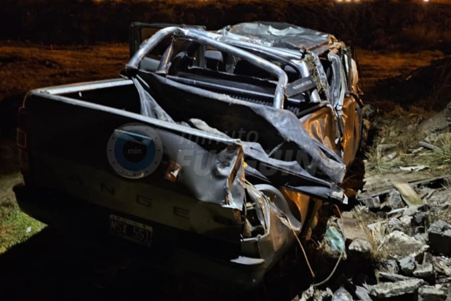 Tras dar algunos tumbos, la camioneta quedó totalmente desecha y terminó sobre uno de los laterales de la calle Perón.