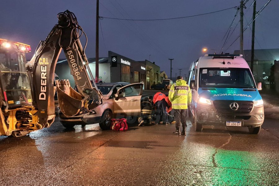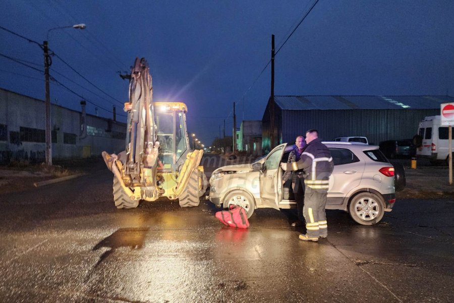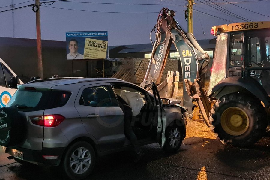 Una Ford Eco Sport, conducida por Irene Sotelo de 45 años chocó contra una maquina retroexcavadora guiada por Juan Humana de 39 años.