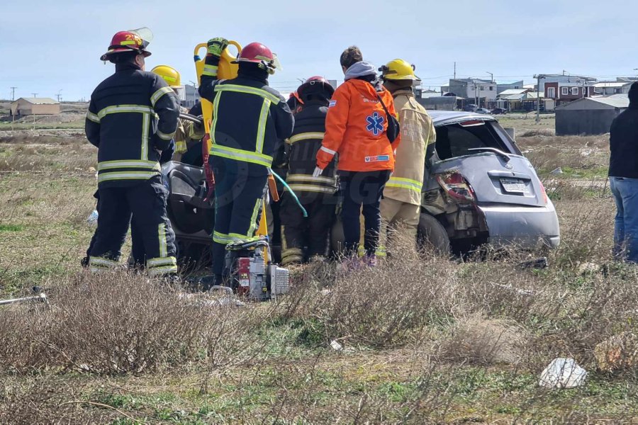 Minutos antes de las 11 horas de este sábado las unidades de emergencia fueron alertadas de un violento accidente de tránsito sobre calle Punta Popper en el tramo de ripio que une el barrio de Las Aves y Malvinas Argentinas.