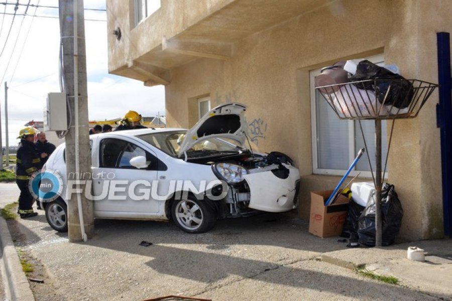 El automóvil Geely detuvo su marcha tras impactar contra la facha de una vivienda. En ese sector se encuentran los nichos de gas. Afortunadamente ninguno de los dos conductores resultaron lesionado.