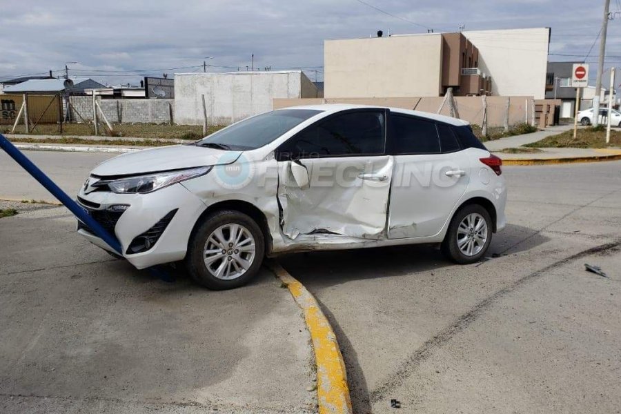 Como consecuencia del choque, precisamente sobre la puerta del conductor, el Toyota Yaris terminó subiéndose a la vereda embistiendo el cartel señalizador ubicado en la esquina, este último era conducido por una mujer de 68 años.