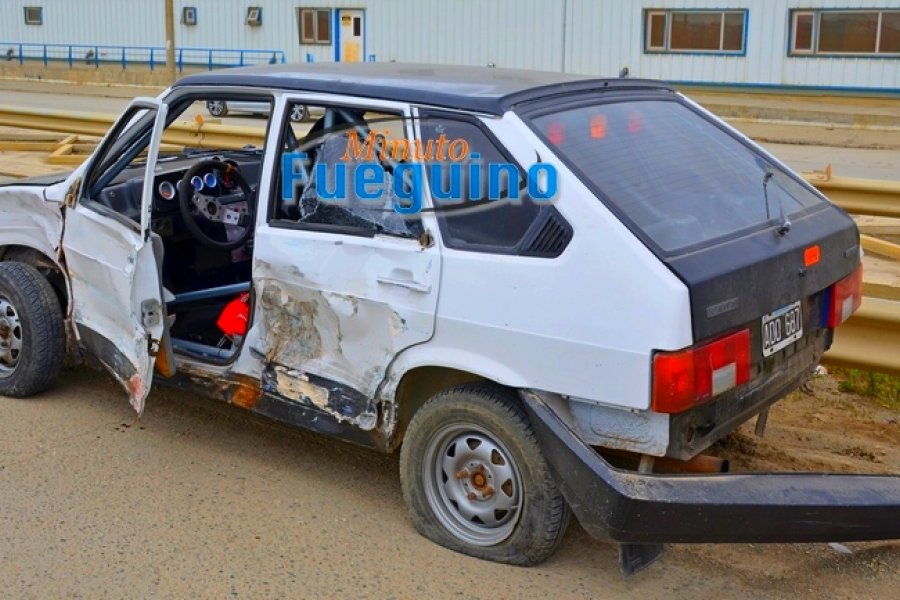 Un Lada Samara de carrera se encontraba transitando en sentido opuesto. Este automóvil recibió un fuerte impactó en el sector de la puerta del conductor, el rodado terminó chocando contra el guardarrail.