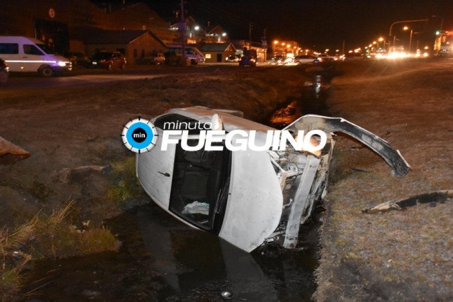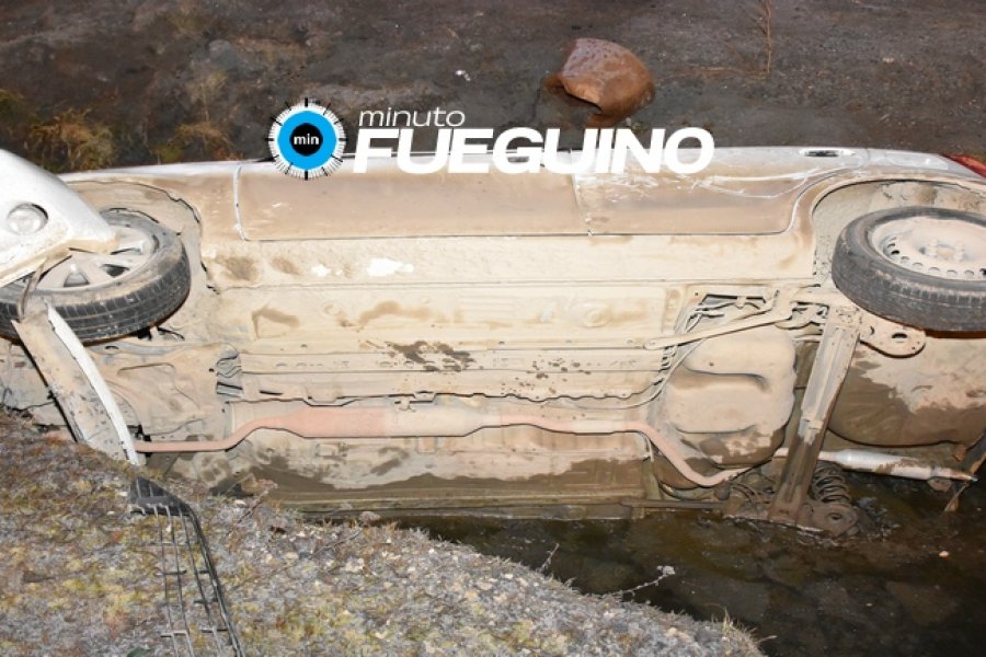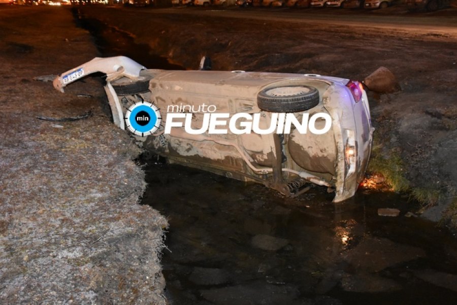 El acciudente de transito ocurrio en horas de esta mañana en la Ruta N°3 en la ciudad de Rio Grande, personas que transitaba frente a la fabrica Brightstar se percataron que un automóvil de color blanco se encontraba volcado en uno de los zanjones del lugar.