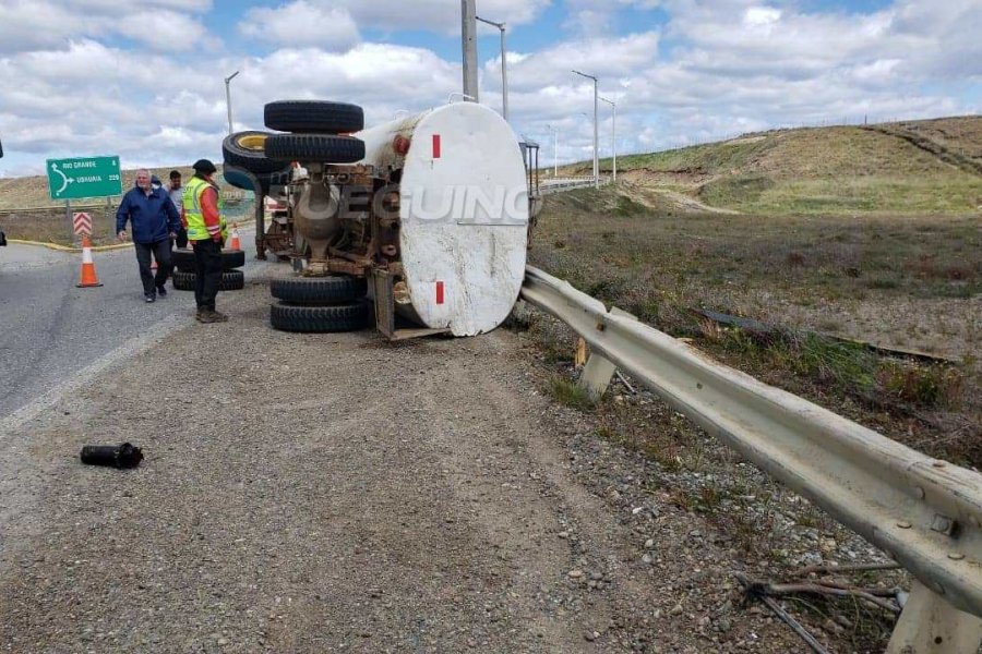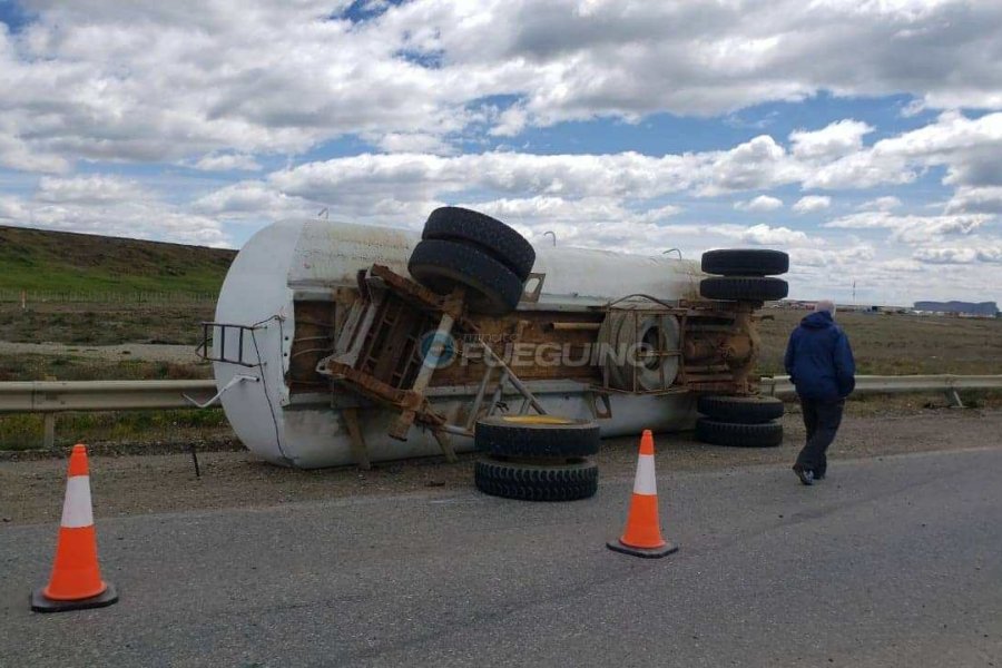 Este rodado era guiado por Carlos Darío René Palacio de 26 años, de la empresa constructora Patagonia, quien resultó ileso. El vuelco se produjo, ya que una maza se cortó.