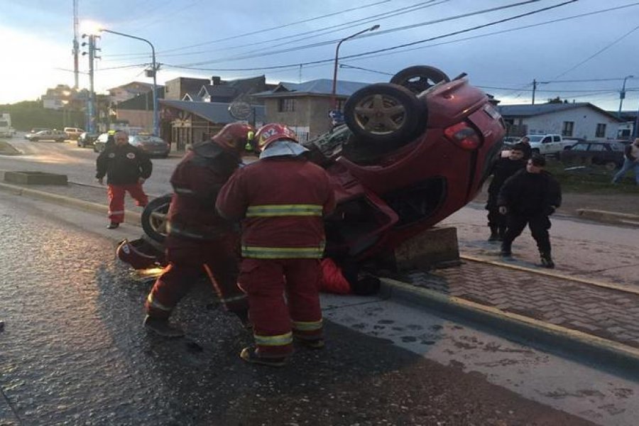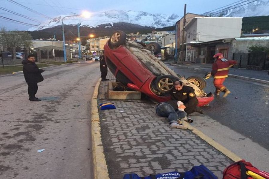 El accidente vial ocurrió en horas de esta madrugada en la intersección de las calles Onas y Magallanes de la ciudad de Ushuaia.