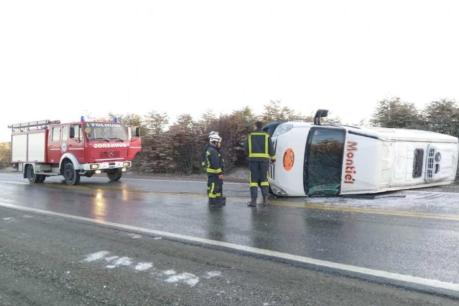 Cerca de las 07:30h de esta mañana, en la Ruta N°3 km 2988, muy cerca del ingreso al destacamento Prefectura Naval, se produjo un accidente donde una combi de la empresa Montiel conducida por Mario Ladino, volcó debido al estado resbaladizo en el que se encuentra la calzada.