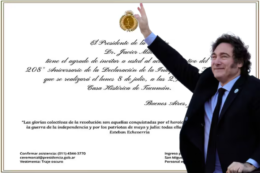 El vocero presidencial Manuel Adorni difundió el texto que se presentará en la vigilia del 8 al 9 de Julio en Tucumán, en el marco de la celebración por el Día de la Independencia. Allí, el presidente Javier Milei, gobernadores, ex presidentes y otros referentes nacionales, firmarán el Pacto de Mayo que propuso el jefe de Estado.