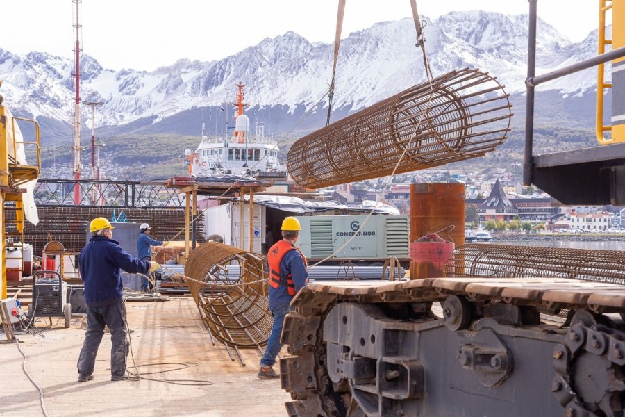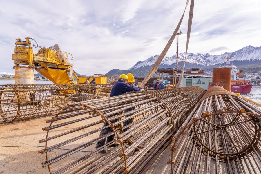 Cabe recordar que los pilotes son un total de 32, poseen 1.5 metros de diámetro y unos 40 de profundidad, que conformarán los siete pórticos donde quedará emplazada la ampliación del muelle comercial del Puerto de Ushuaia.