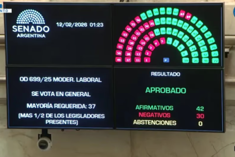 Con la CGT manifestando en la puerta del Congreso en contra de la iniciativa, el proyecto de reforma laboral logró la media sanción de la Cámara de Senadores. Un paso clave para el Gobierno, que consiguió en el tratamiento en general 42 votos a favor y 30 en contra.