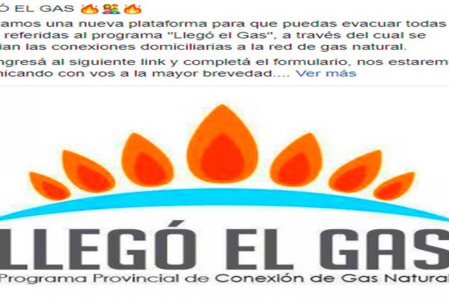 Para ello deberán ingresar en el en perfil de Gobierno de Tierra del Fuego AIAS en la red social de Facebook o bien al siguiente link: https://www.facebook.com/ Gobierno-de-Tierra-del-Fuego- AIAS-924253577657013/. Una vez allí podrán consultar en la publicación sobre ‘Llegó el Gas’, donde por medio de un formulario podrán ingresar sus datos personales, del domicilio, y la consulta que se desee realizar. Una vez enviado el requerimiento, serán contactados desde el Gobierno provincial para dar respuestas a sus inquietudes.