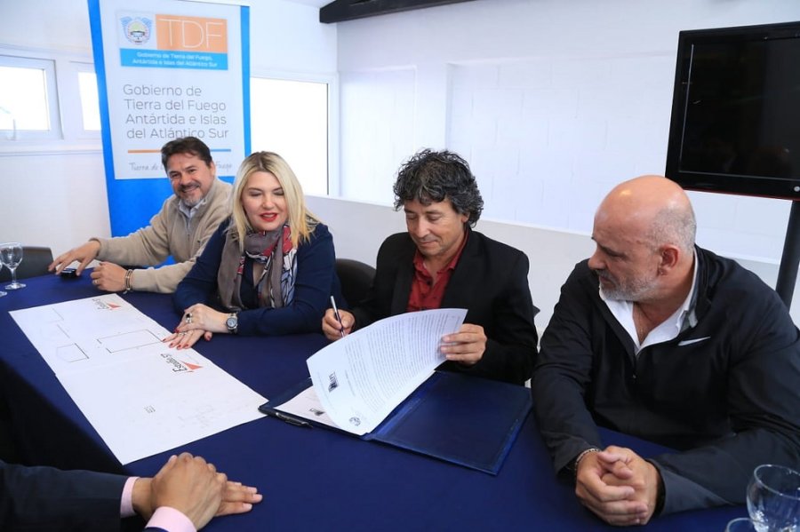 La gobernadora Rosana Bertone suscribió este viernes el convenio de cesión – permuta mediante el cual el IPV transfiere al Centro de Empleados de Comercio un terreno de 206,83mt2, donde el sindicato construirá un galpón de 168 mt2 para el Canal 13 de la ciudad de Río Grande.