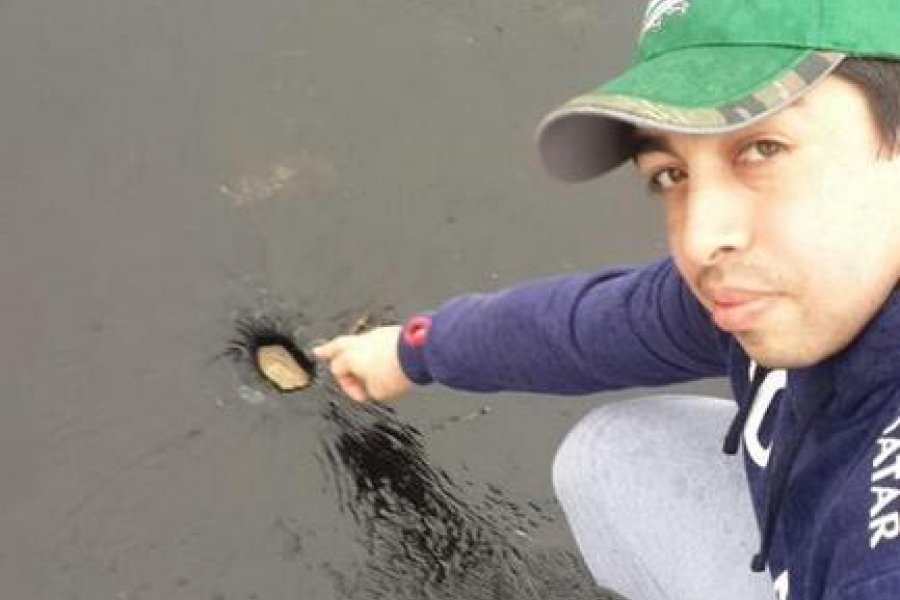 “Caminando por el Puente Justicia esto está al otro lado, por ex el campamento de Vialidad”, relata en su muro Nando Fleitas, un vecino preocupado por una mancha de un líquido que parecería ser petróleo o algún combustible similar.