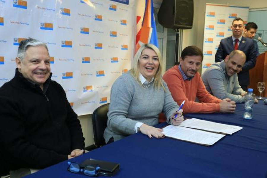 La gobernadora Rosana Bertone firmó este martes el contrato para la construcción del Complejo Deportivo de la Margen Sur de Río Grande, espacio que estará destinado para uso de prácticas deportivas de la comunidad de ese sector de la ciudad.