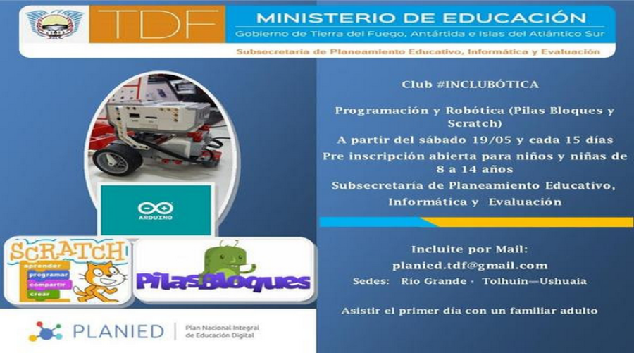 El Gobierno provincial, a través del Ministerio de Educación lanza #INCLUBOTICA que tiene como objetivo crear un espacio de aprendizaje, construir conocimientos y desarrollar capacidades en robótica y nuevas tecnologías de los estudiantes en toda la provincia.