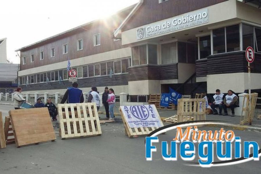 En la casa de Gobiernos los manifestando no se dejan ingresar autos al sector del estacionamiento, varios manifestantes también cortaron la circulación vehicular frente a la casa estatal con varias tarimas.