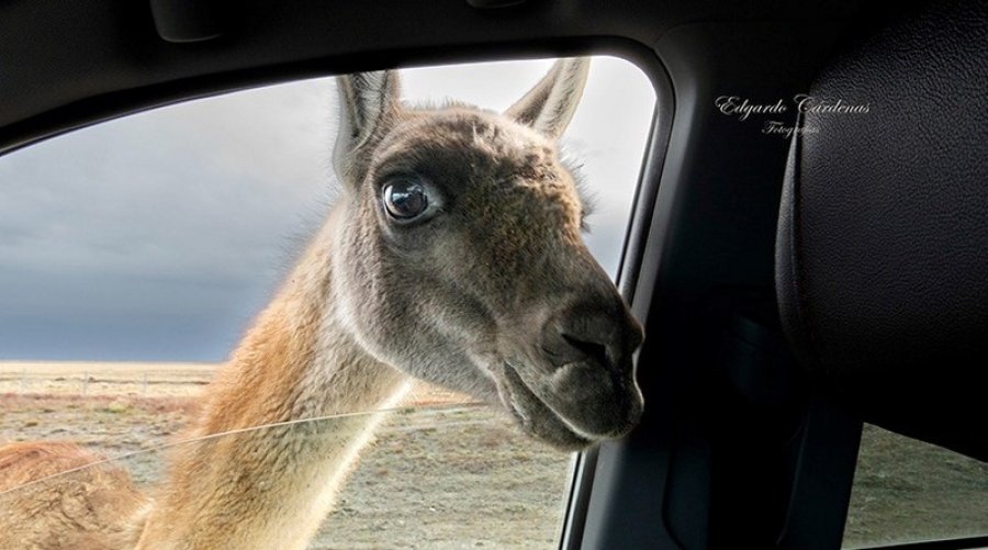 Todos abandonaron el lugar, a excepción de uno que se quedó y comenzó a acercarse. "Aprovecho la oportunidad y también le hago fotos. Me miraba con mucha atención y comienza a acercarse. Pensé que pasaría cerca para cruzar al otro lado de la ruta pero no, venía hacia donde estaba. Cambio inmediatamente de cámara ya que lo tenía muy cerca, tan cerca que mete su cabeza por la ventana.", señaló Cárdenas