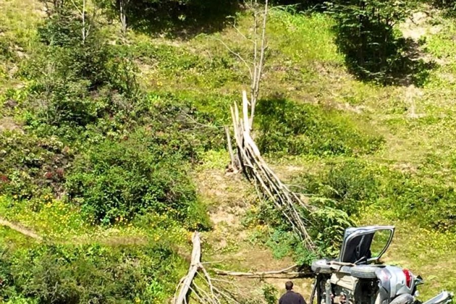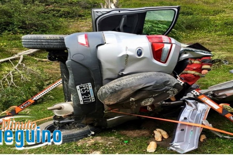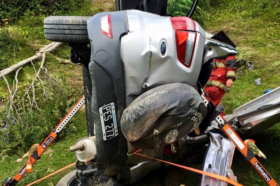 El vehículo al desbarrancarse dio varios tumbos, el rodado quedó irreconocible. Personal bomberil debió cortar el techo del rodado para sacar a sus ocupantes.