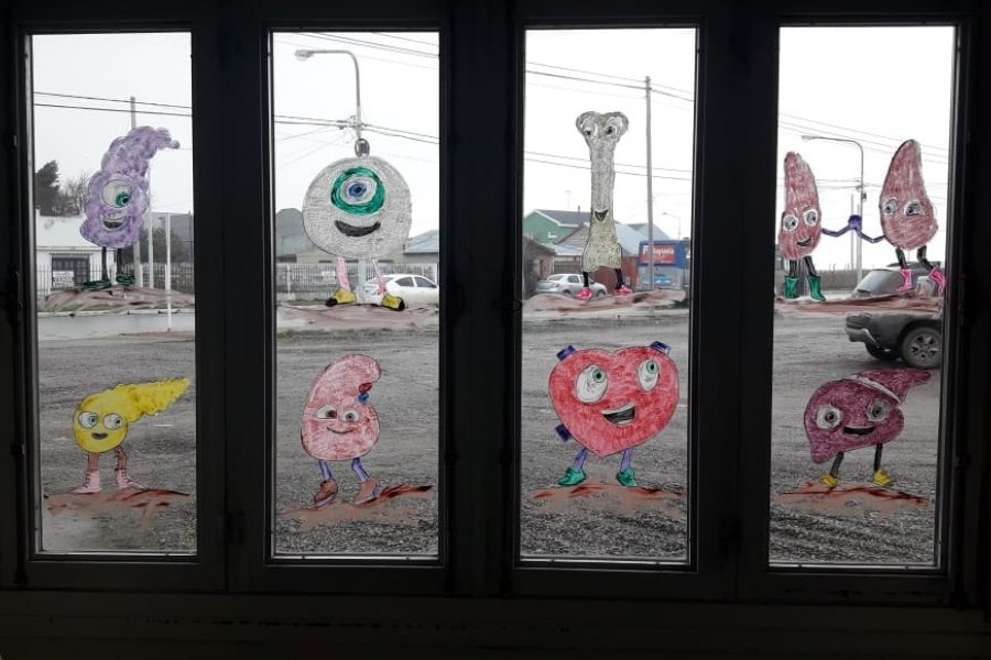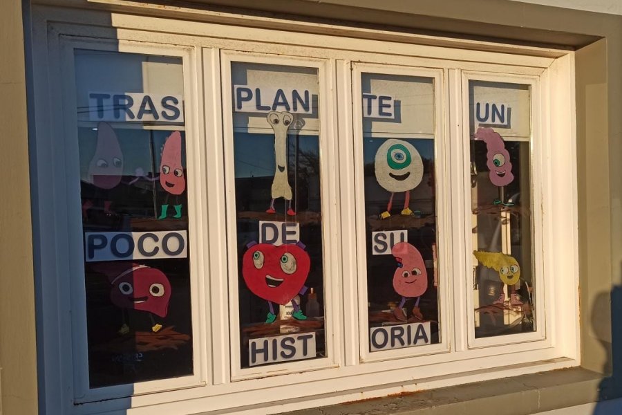 "Como hoy es el día Nacional de la Donación de Órganos, hicimos un ventanal con dibujos en referencia a este día, en las ventanas podrán ver los distintos tipos de donaciones de órganos que hay. Hay gente que no conoce sobre el tema y lo que se puede y no donar".
