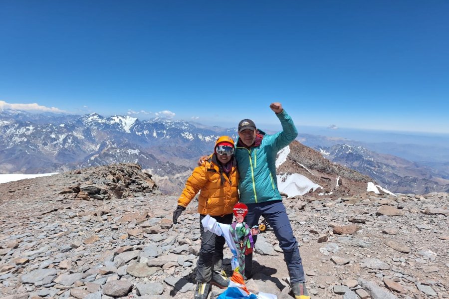 Hace cuánto tiempo que ustedes practican este deporte aquí en Tierra del Fuego "nosotros hace un montón, hace varios años, los dos. Por ejemplo, somos colaboradores del Club Andino Río Grande, y aparte hacemos montaña nosotros solos. También en otros años hemos coronado también el techo de la Patagonia, que es el Volcán Domullo. Hemos hecho otros volcanes también en la Patagonia. Teníamos esto en cuenta pendiente de coronar el techo de América, que lo tenemos acá en Argentina, es nuestro. Así que teníamos ganas también de hacer esto" finalizó Daniel.