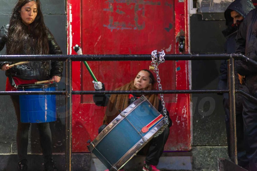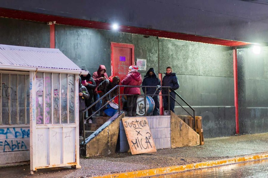 Minuto Fueguino estuvo presente en el lugar en donde además habían colocado carteles y amigos de la familia se manifestaban bombos.