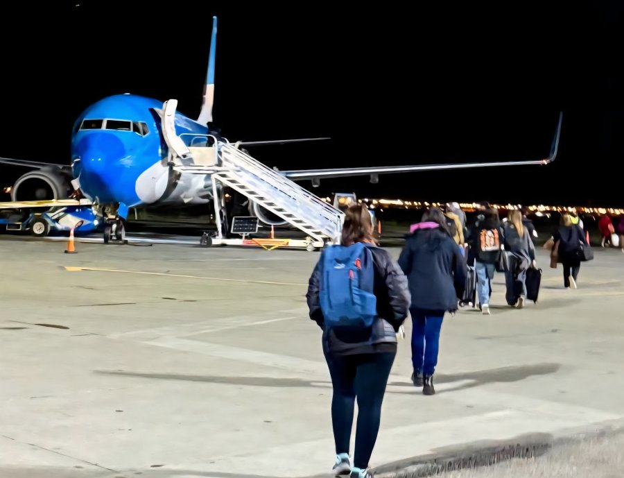 Los pasajeros que llegan o parten desde el aeropuerto de Río Grande deben continuar realizando el embarque y desembarque directamente sobre la pista, expuestos al viento y al frío, mientras la manga instalada junto a la terminal sigue sin utilizarse.