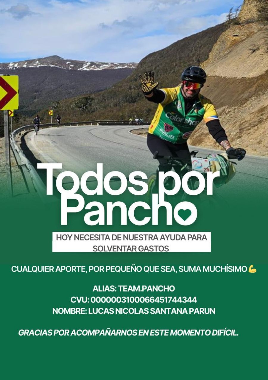 Quienes deseen colaborar pueden hacerlo a través del alias TEAM.PANCHO o mediante el CVU 0000003100066451744344, a nombre de Lucas Nicolás Santana Parun.