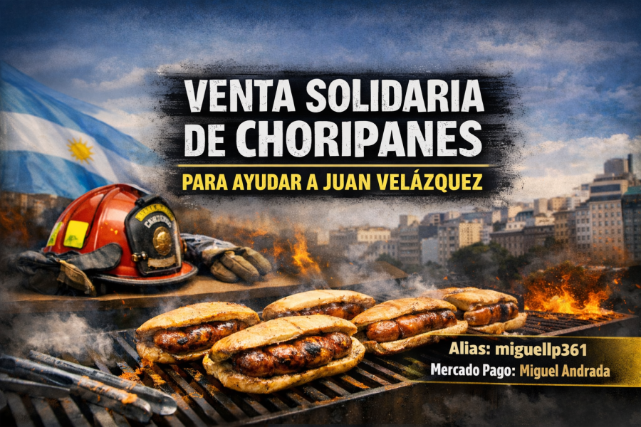Este viernes 16, a partir de las 19:00 horas, se realizará una venta solidaria de choripanes en el Cuartel Central, ubicado en la intersección de Libertad y Perón, a beneficio de Juan Velázquez, padre de un bombero voluntario, quien debe viajar a la Ciudad de Buenos Aires para realizar un tratamiento de radioterapia.