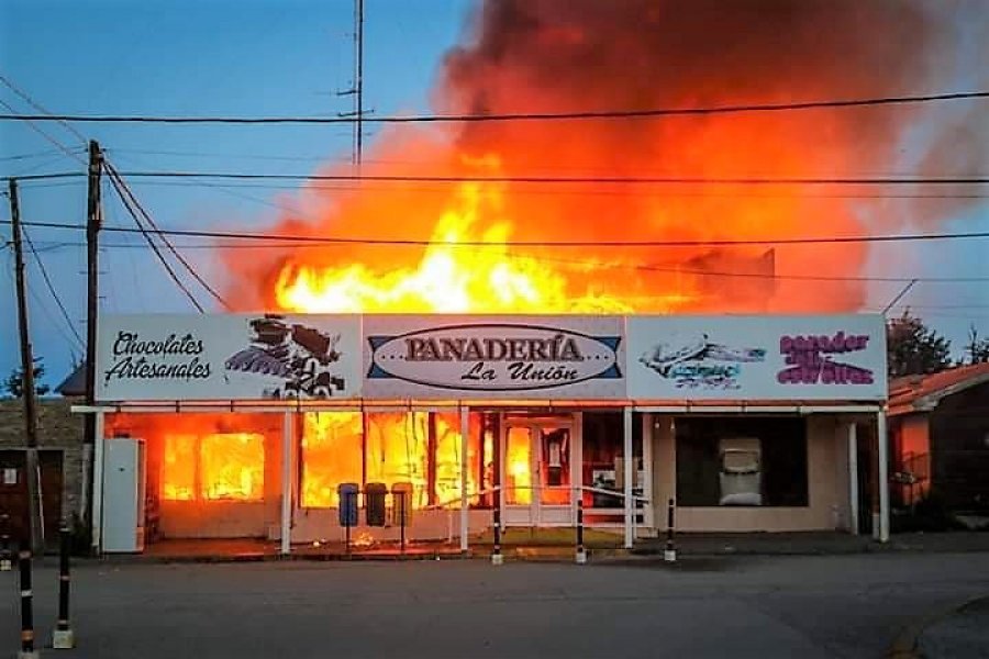 Durante esta madrugada un voraz incendio tuvo lugar en la reconocida panadería La Unión de la ciudad de Tolhuin.