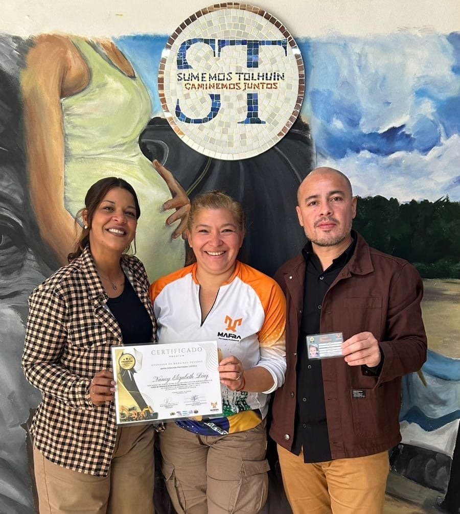 Con este logro, se convirtió en una de las primeras mujeres tolhuinenses en alcanzar esta certificación, marcando un paso importante en la incorporación de mujeres a rubros históricamente masculinizados como el de la maquinaria vial y pesada.