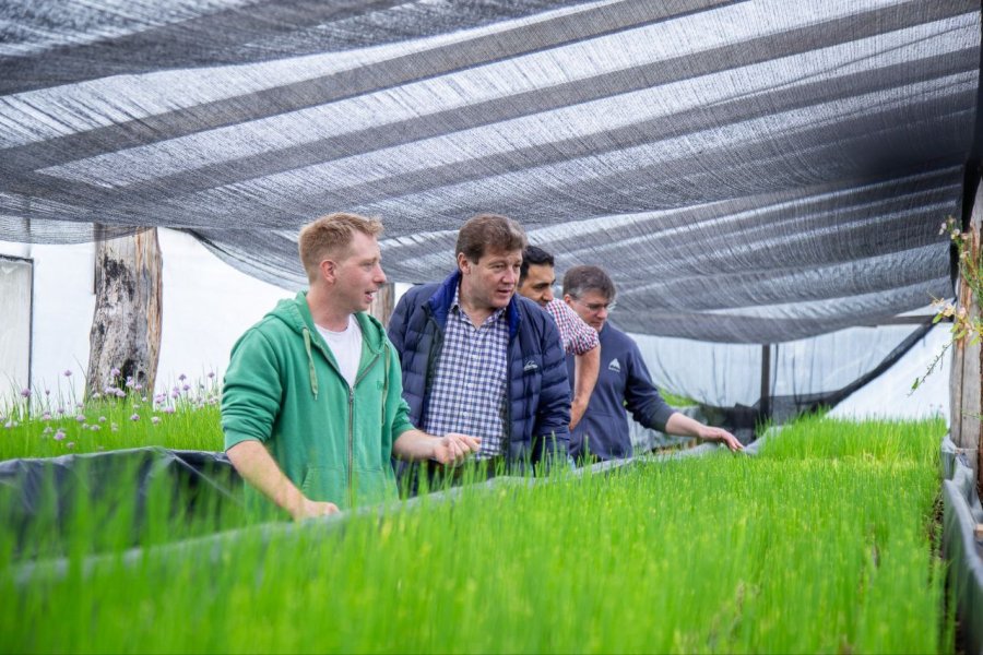 El Gobernador de Tierra del Fuego, Gustavo Melella, recorrió las instalaciones de Verdenova Patagonia SRL, un emprendimiento radicado en Tolhuin que produce verduras de hoja y flores comestibles mediante tecnología de punta para el control de cultivos.