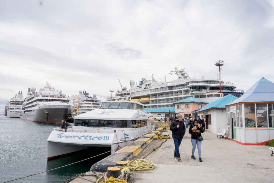 Durante estas jornadas, el muelle concentra recambios de pasajeros, abastecimiento de combustible, provisión de víveres y operaciones logísticas vinculadas al turismo y a la actividad científica.