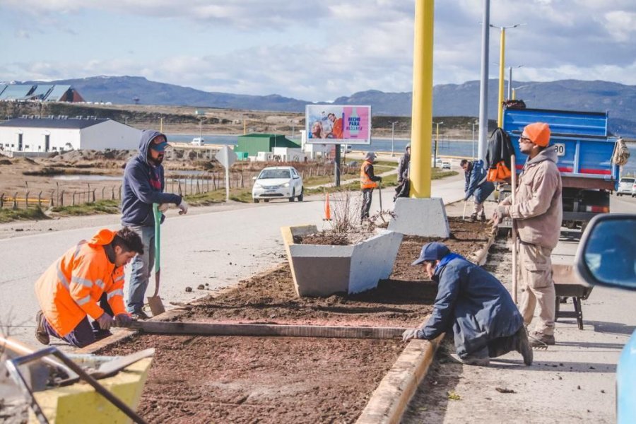 La Municipalidad de Ushuaia a través de la Secretaría de Medio Ambiente y Desarrollo Sustentable, y desde el área operativa de Parques y Jardines, avanza en la puesta en valor de la entrada del aeropuerto y distintos espacios de la ciudad.