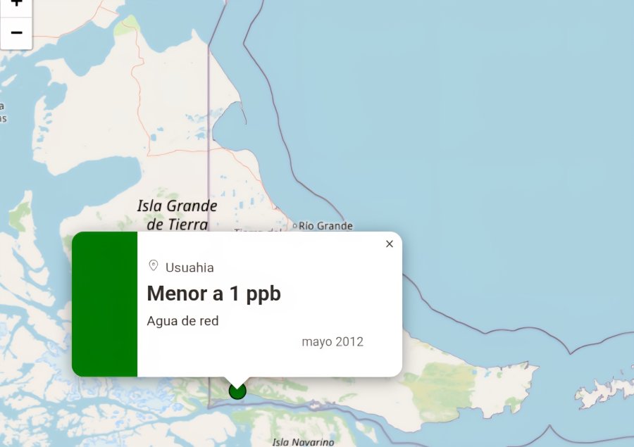 El Mapa de Arsénico en Argentina, elaborado por el Instituto Tecnológico de Buenos Aires (ITBA), volvió a relevar datos en todo el país y confirmó que en Ushuaia el agua de red registra valores menores a 1 ppb, muy por debajo del límite recomendado por la Organización Mundial de la Salud (OMS), que establece un máximo de 10 ppb para consumo seguro.