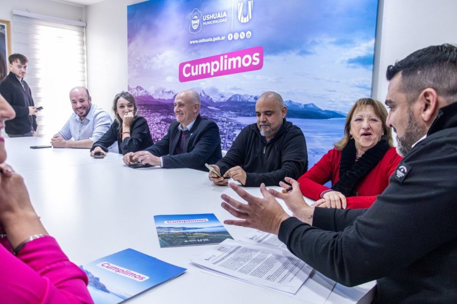 El encuentro tuvo lugar en la sala de situación de la intendencia, donde también participó la legisladora Victoria Vuoto, la secretaria de la Mujer, Género y Diversidades Alejandra Vuoto, el jefe de Gabinete Sebastián Iriarte, el secretario de Gobierno César Molina y el jefe de la Defensoría, Sebastián Medina.